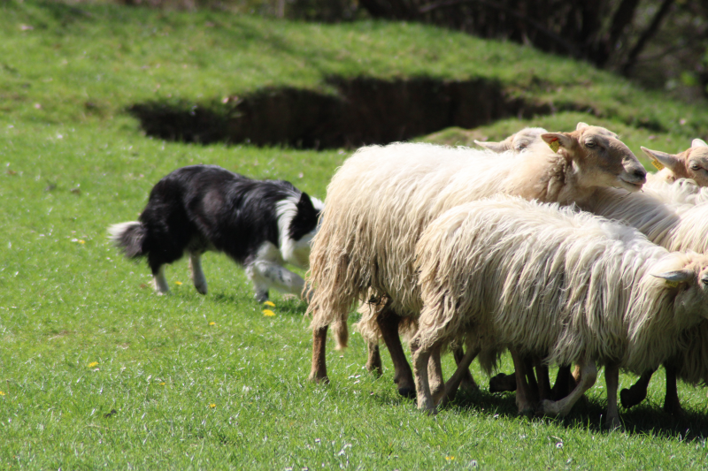 Border collie: de manier van werken is uniek. Ze weten de schapen zo aan te staren de schapen ze serieus nemen en gaan lopen zoals de Border collie wil. Ze gaan door hun voorpoten en sluipen om de schapen heen. Ze zien alles. Op elke beweging reageren ze. Als er een schaap uit de kudde raakt dan is de Border collie er al bij. Net als de Baskische herder loopt de Border collie ook van links naar rechts en van rechts naar links achter de schapen maar niet zoveel en snel. Een Border collie kan de hele dag in het veld aan het werk zijn. Als ze moeten wachten op hun beurt kunnen ze snel vocaal worden. Een Baskische herder kan in de rust gewoon meters bij de schapen vandaan gaan liggen en ontspannen. Beide kunnen vocaal zijn maar de Border collie is het als hij graag aan de slag wil en kan niet op zijn beurt wachten en de Baskische herder is het meer uit waken. Dus als iemand het terrein opkomt. Ze zijn enorm behendig en kunnen van hoge snelheid ineens tot stilstand komen. Daarom winnen ze in vele hondensporten