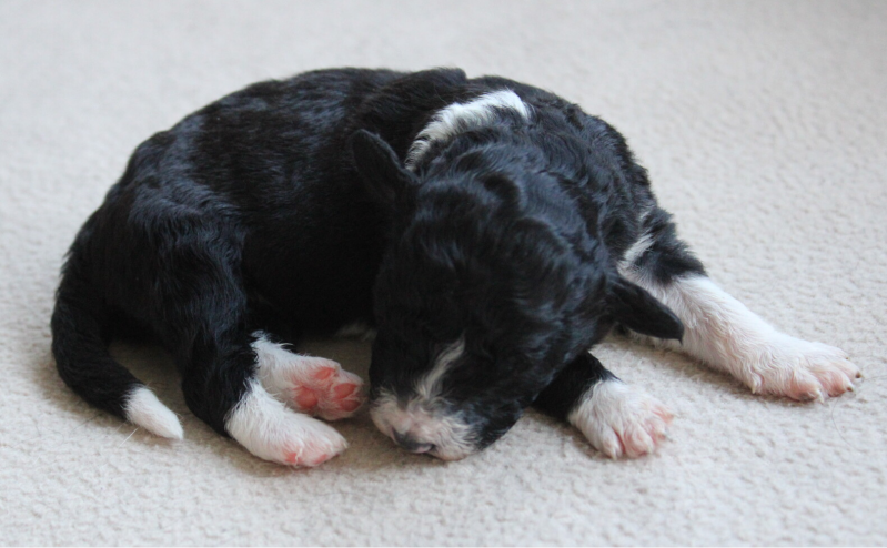 1-8 Chadée is 8 weken. Het was een zoektocht maar ze heeft gelukkig 2-8 haar nieuwe huis gevonden! Ze komt bij een stel met kinderen en nog een Doodle die denk ik elkaar perfect zullen aanvullen. Ze weet nu dat ze kuilen kan graven om daar lekker in te gaan liggen voor de koelte. In het bos ligt ze graag onder de bolderkar voor de koelte. Ze is sociaal en vindt andere honden wel prima en is geïnteresseerd maar doet ook weer haar eigen ding