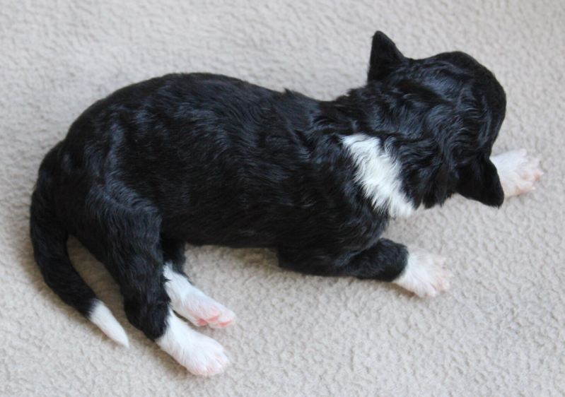 4-7 Chadée is vandaag 4 weken oud. Je kan nu langzaam steeds meer karakter zien. Chadée is wat op de achtergrond. Ze vindt knuffelen uiteindelijk wel fijn maar komt niet de hele tijd. Ze speelt graag met de andere pups. Ze is vooral te vinden bij Djess en Dinah. Ze heeft ook momenten dat ze afwachtend kijkt. Ze kan goed voor zichzelf opkomen en het andere moment laat ze een ander de baas spelen