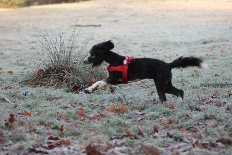 20-11-2022 Chadée is hier 5,5 maanden oud. Ze is net naar de trimmer geweest dus het is lekker kort. Ze heeft een fleece vacht gekregen. Ze verliest geen vacht. In vergelijking met de andere pups is zij de kleinste van het nestje. Djess heeft haar ingehaald. Chadée is nog steeds op zichzelf. Ze doet lekker haar eigen ding maar vindt het ook leuk om met de andere pups te spelen. Ze weet wel hoe ze leiding moet nemen en leert snel. Kunstjes of gewoon dingen voor elkaar krijgen