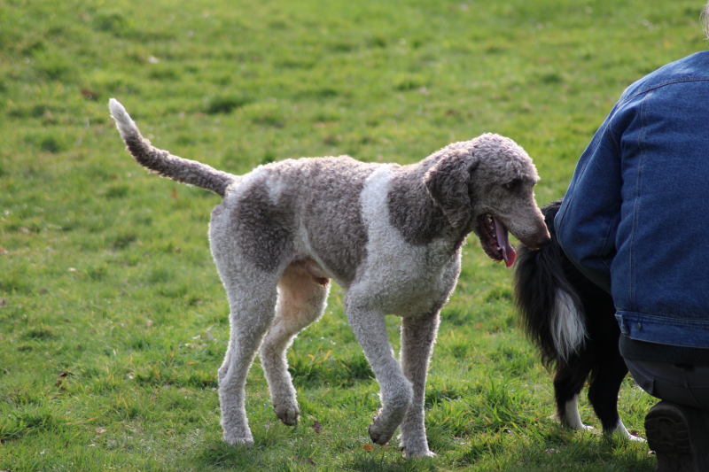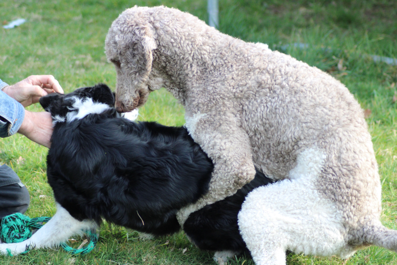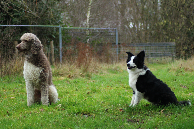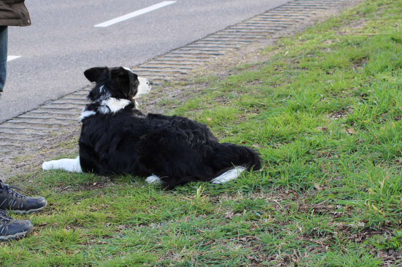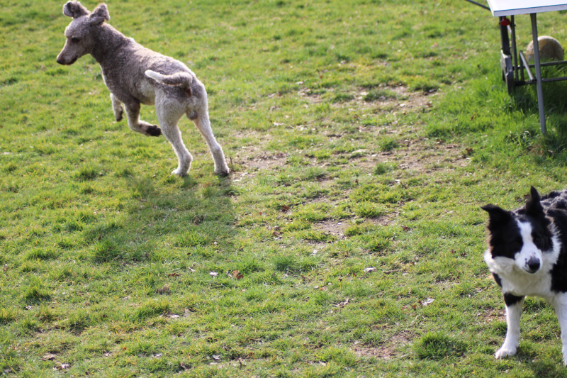 De foto is niet scherp maar is wel te zien dat Mayla Jack afblafte. We waren bijna bang dat het niet meer ging lukken omdat ze af bleef snauwen. Totdat ze een paar keer zelf ging staan met haar staart opzij