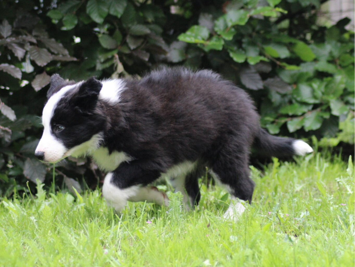 5 weken. Op vrijdag is de puppy test gedaan en is eruit gekomen wat het karakter is. Daardoor is er ook bekend welke pup het beste bij wie past en dus heeft hij nu ook zijn nieuwe naam: Pep. Pep is een actieve, gevoelige pup. Hij probeert bijvoorbeeld naar iets nieuws te gaan maar vindt het dan wel spannend en durft dan ineens niet meer en schiet terug. Hij schrikt sneller van vreemde dingen. Mensen vindt hij echt fantastisch. Het liefst komt hij helemaal in je nek kruipen en wil ontzettend graag aandacht. Honden vindt hij leuk en wil met ze spelen maar kan ook prima zijn eigen ding doen. Hij is de actiefste van het nest maar zeker niet hyper