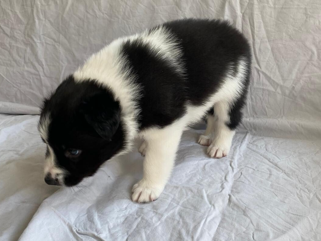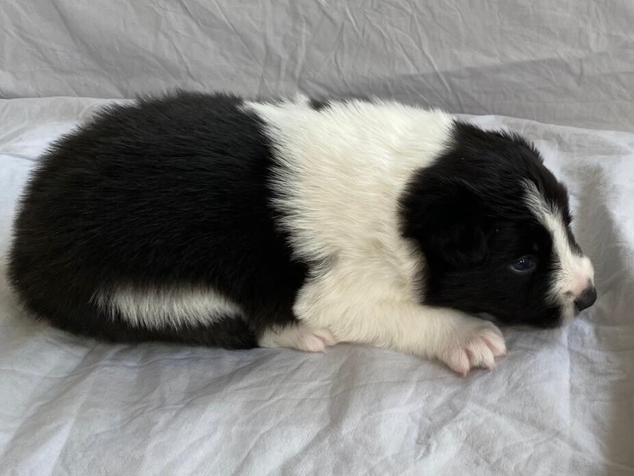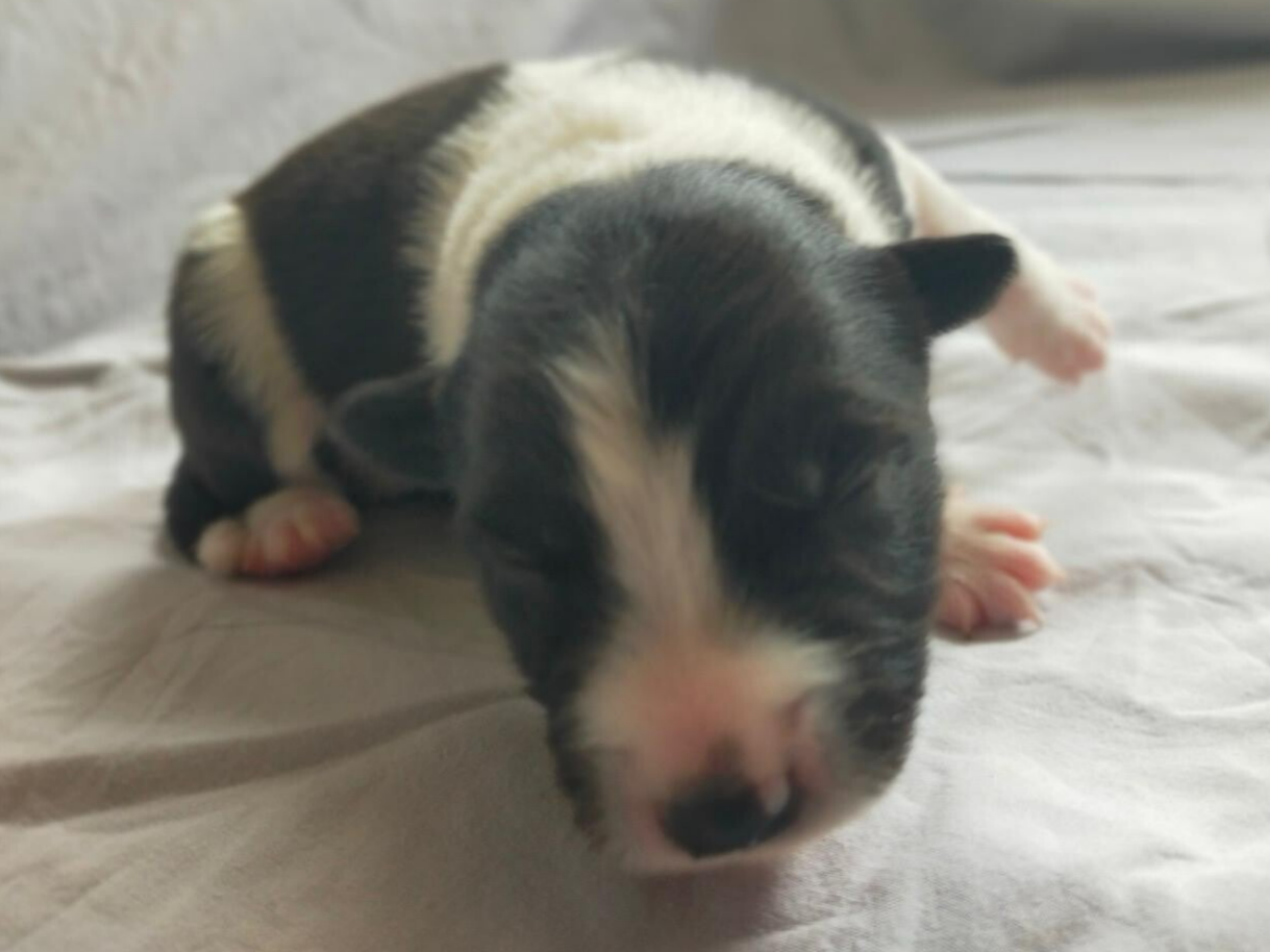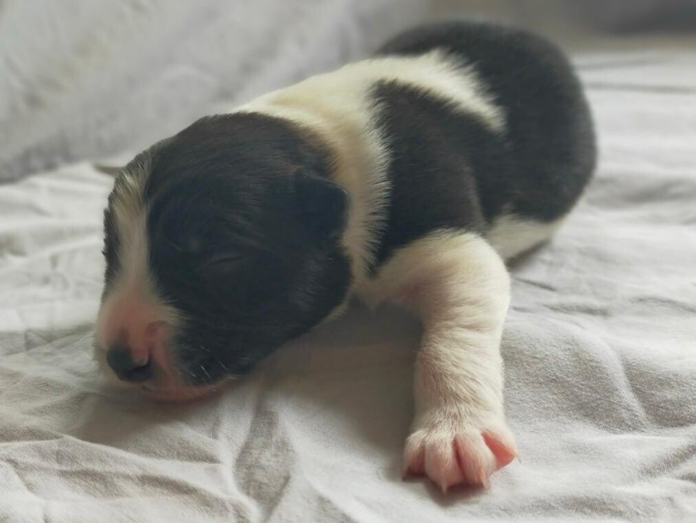 5 weken. Op vrijdag is de puppy test gedaan en is eruit gekomen wat het karakter is. Daardoor is er ook bekend welke pup het beste bij wie past en dus heeft hij nu ook zijn nieuwe naam: Jack. Jack is heel rustig en respectvol bij mensen. Hij is de enige die niet gelijk omhoog kwam en op schoot kroop. Honden vindt hij ook leuk dus is Jack een sociale pup