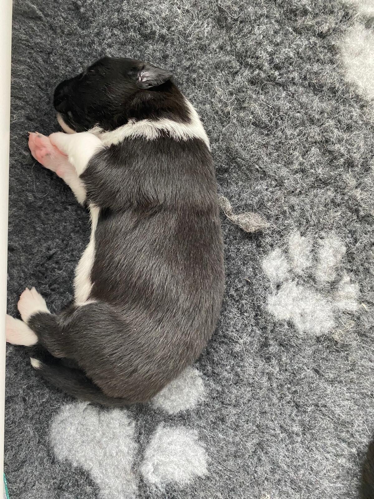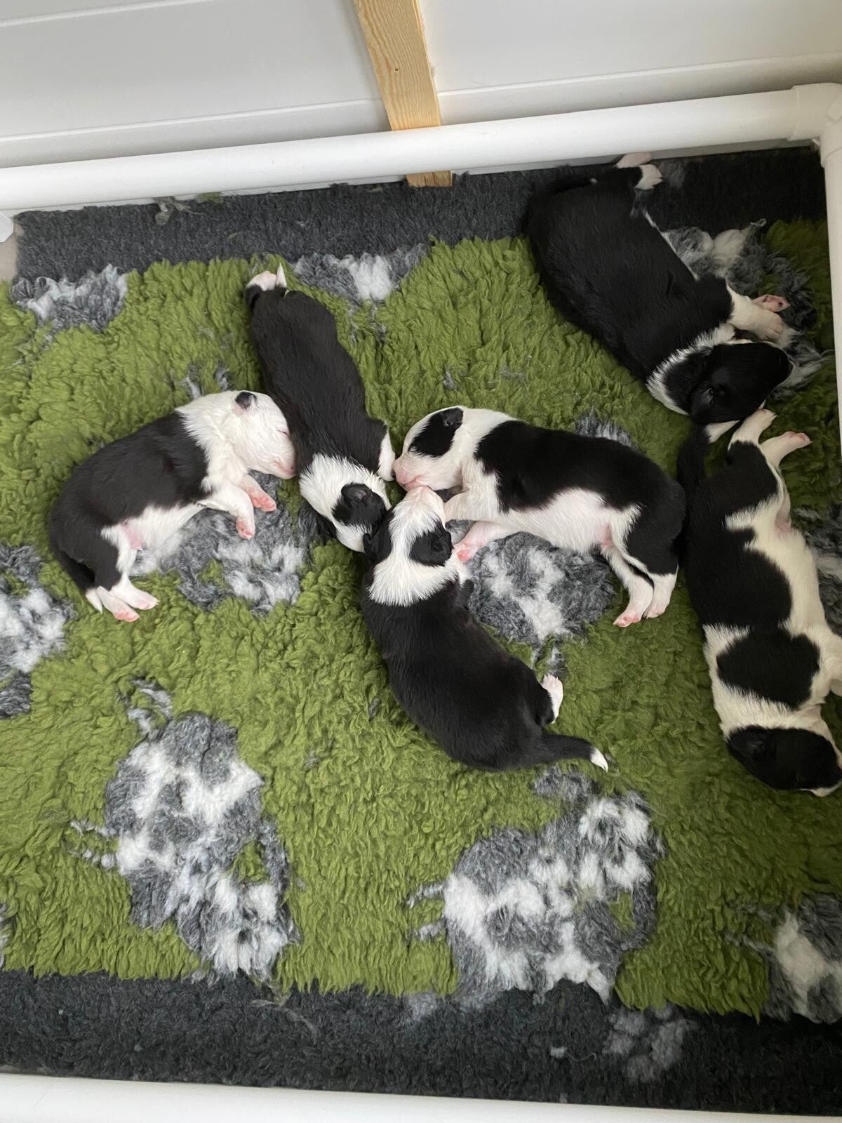 13 april de pups zijn nu goed te zien want mama is even uit de werpkist gaan liggen. De lamp is ook niet steeds aan wegens vloer verwarming en ze houden zichzelf goed warm