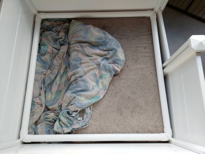 2 mei lag Mayla hijgend in de werpkist. De deken ligt nu op het kussen terwijl het er altijd ernaast ligt en haar temperatuur is wat gezakt. Van het deken kan betekenen dat ze aan het graven is geweest om een nest te maken. Dat is een voorteken van de bevalling. Ik ga zo even weer temperaturen maar ze is verder nog vrij rustig. Wil je up to date blijven klik dan hier. Het heeft verder niet doorgezet. Ze ligt nu (in de middag) heerlijk ontspannen te slapen aan mijn voeten