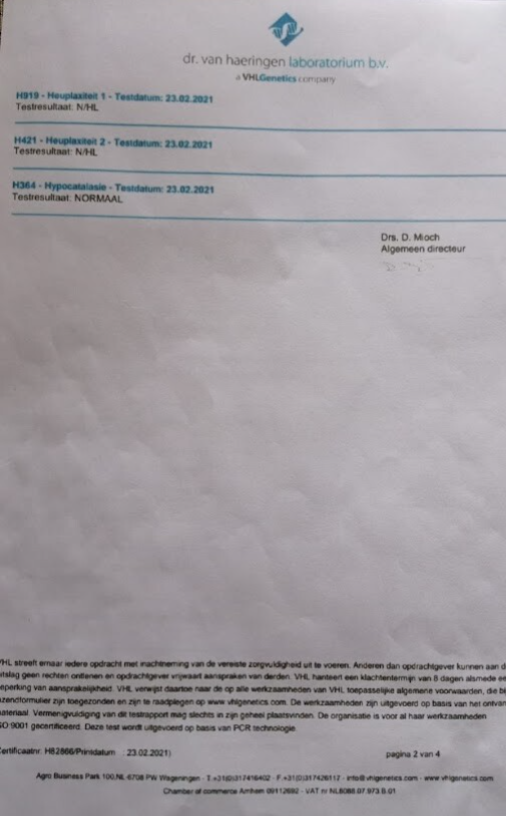 Hieronder zijn voorbeelden waar DNA onderzoeken worden uitgevoerd. Laboklin geeft sowieso binnen 2 weken uitslag. Op volgorde van prijsklasse en verscheelt nogal!